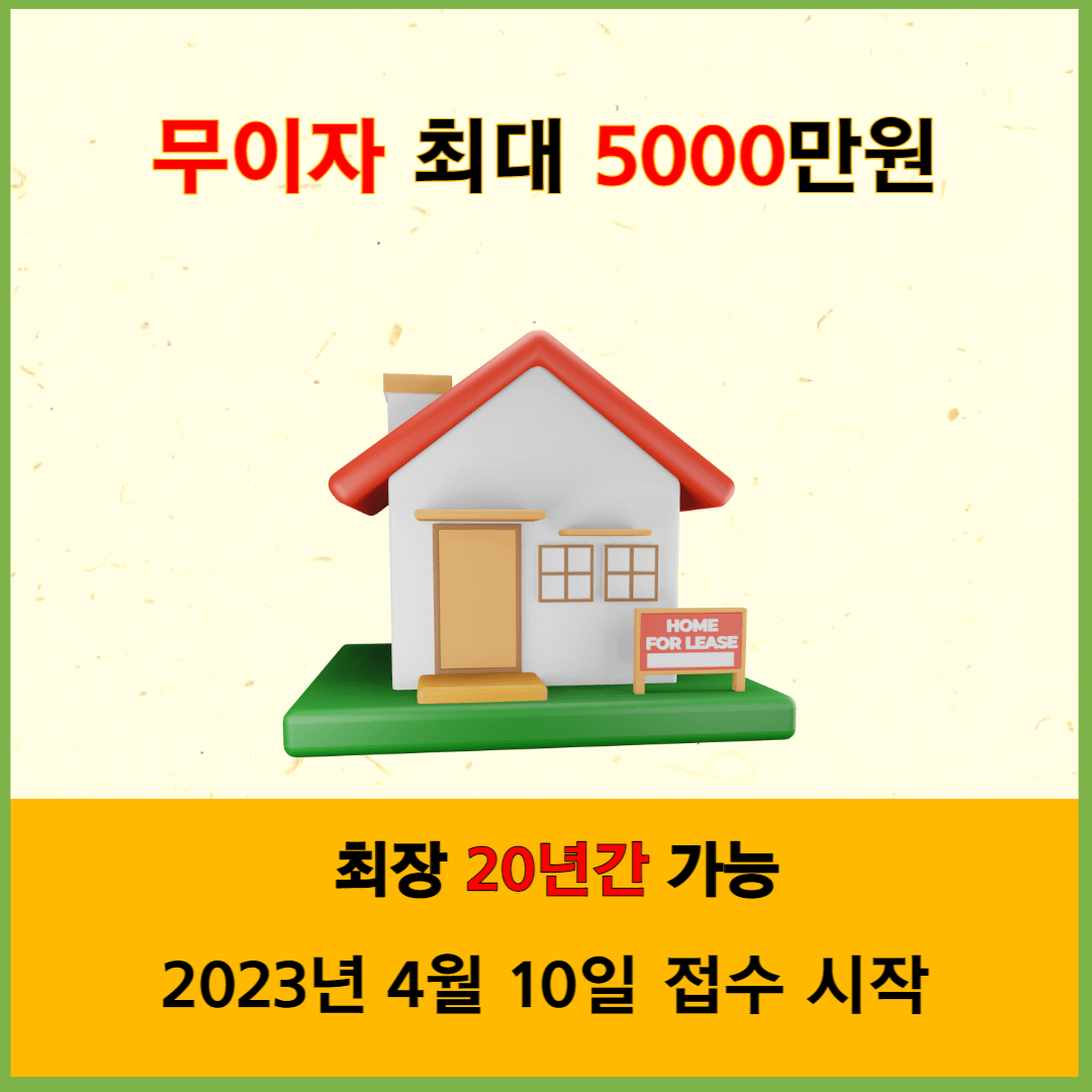최대 5000만 원 무이자로 최장 20년까지 받을 수 있으며 올해는 5000 가구를 지원한다고 합니다.