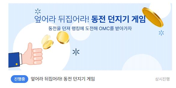 동전을 던져 나의 운은 어디까지인지 시험해 보고 누적점수를 쌓아 랭킹에 도전 OMC를 획득할 수 있다고 합니다.